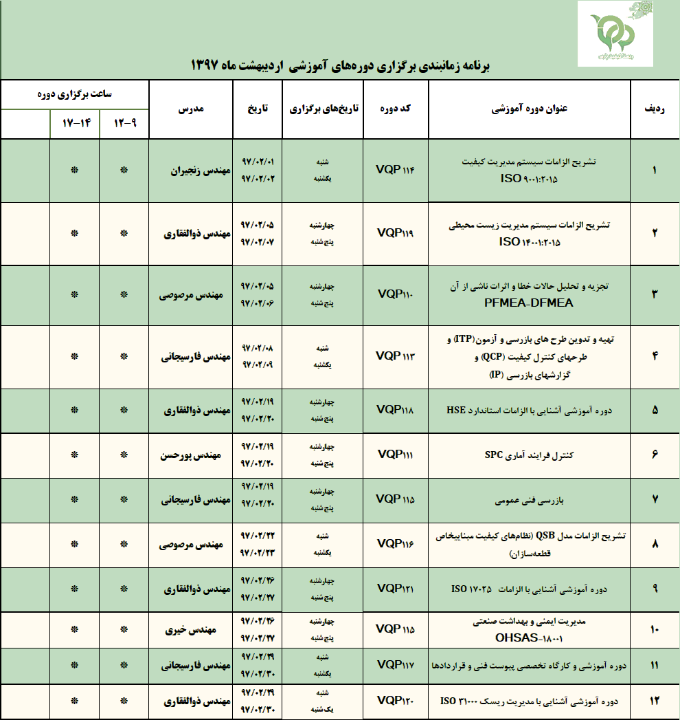| برنامه زمانبندی برگزاری دورههای آموزشی فروردینماه ۱۳۹۷ |