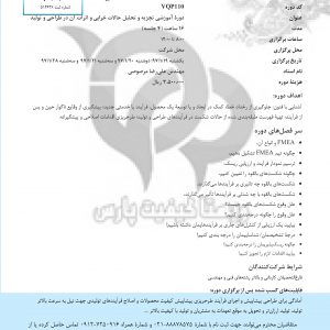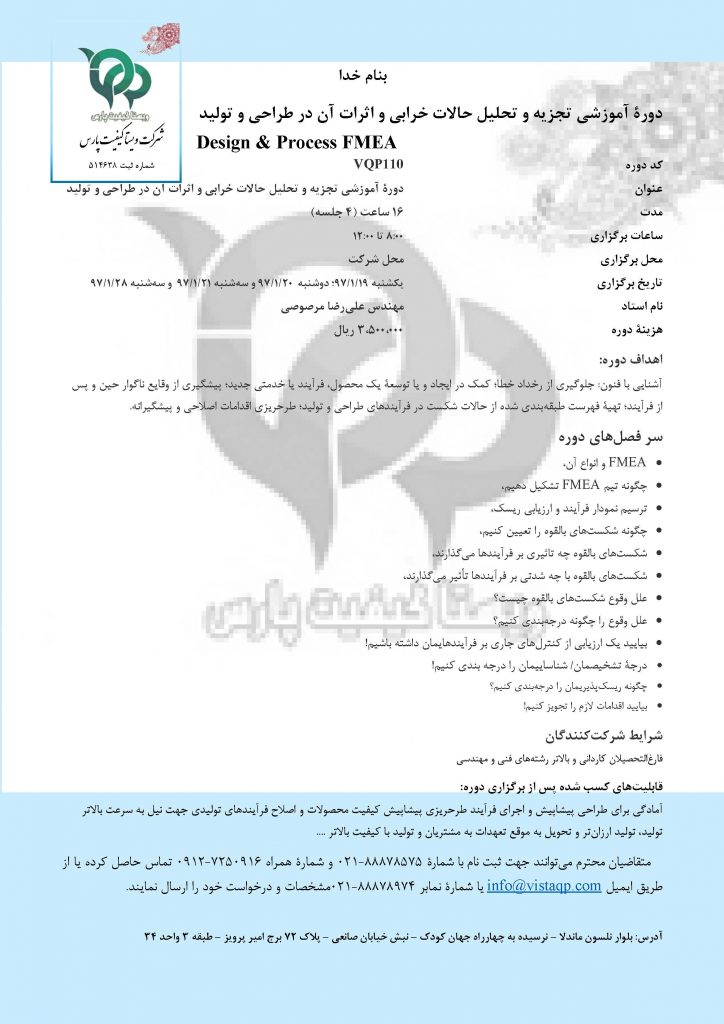 عنوان دوره آموزشی تجزیه و تحلیل حالات خرابی و اثرات آن در طراحی و تولید