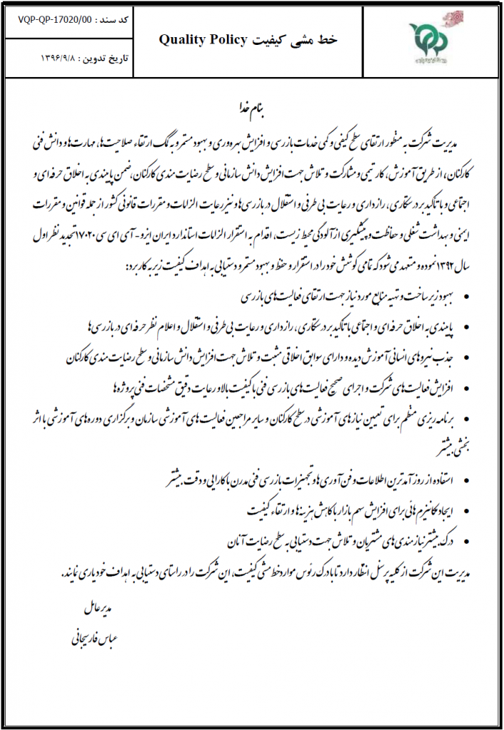 شرکت ویستا کیفیت پارس